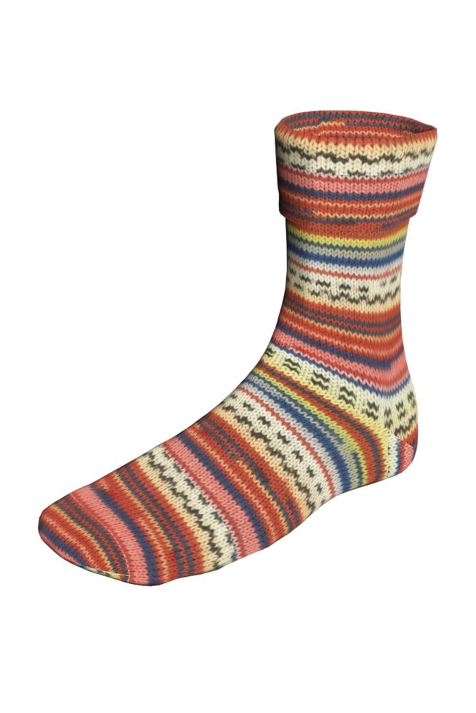 Un fil à chaussettes jacquard ou chaque couleur vous donnera un motif différent. Plus ludique que des fils unis, vous vous régalerez a tricoter vos chaussettes.